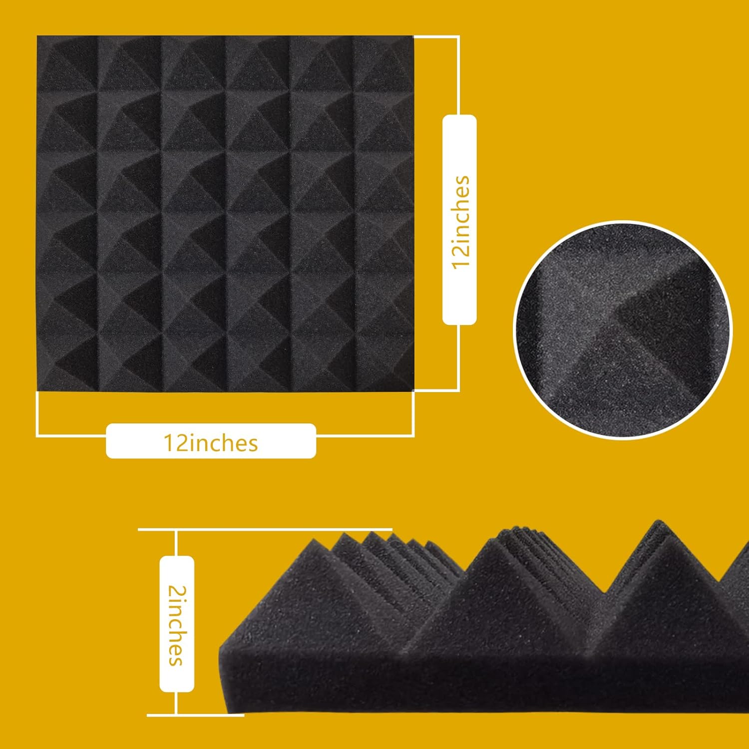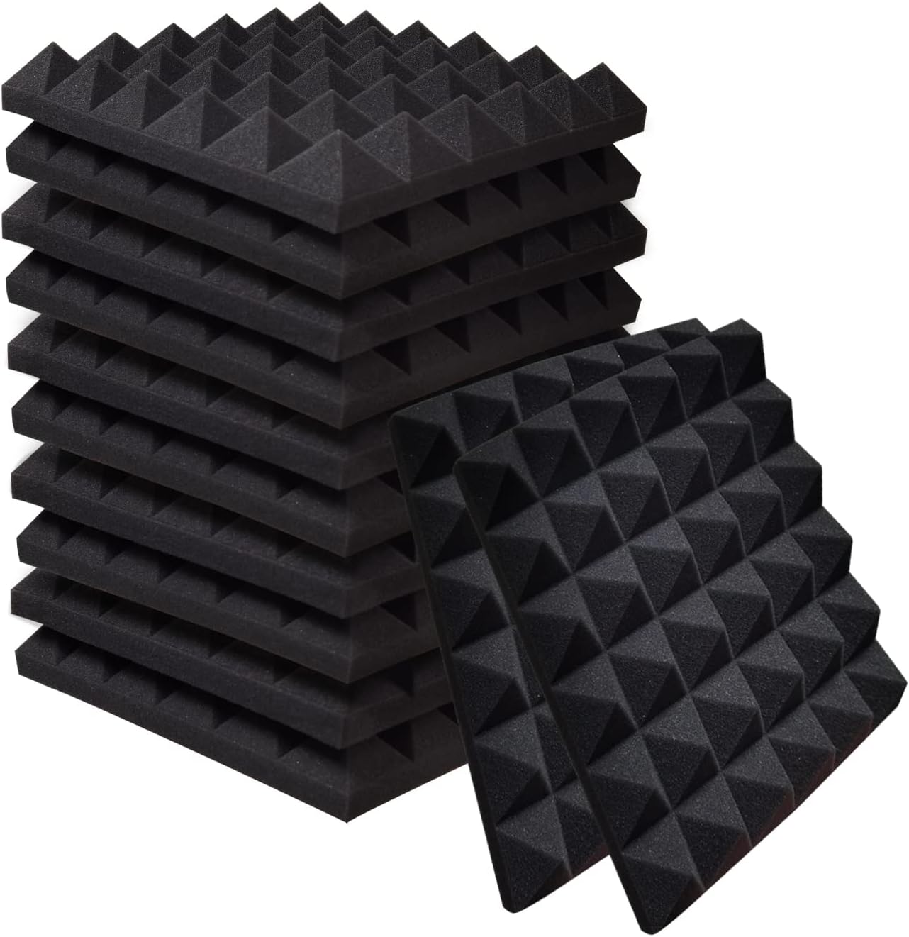 Ikaufen 48 Pack Pyramid Designed Acoustic Foam Panels, 12 x 12 x 2 Inches Sound Proof Foam Panels, High Density and Fire Resistant Acoustic Panels, Sound Panels, Studio Foam for Wall and Ceiling