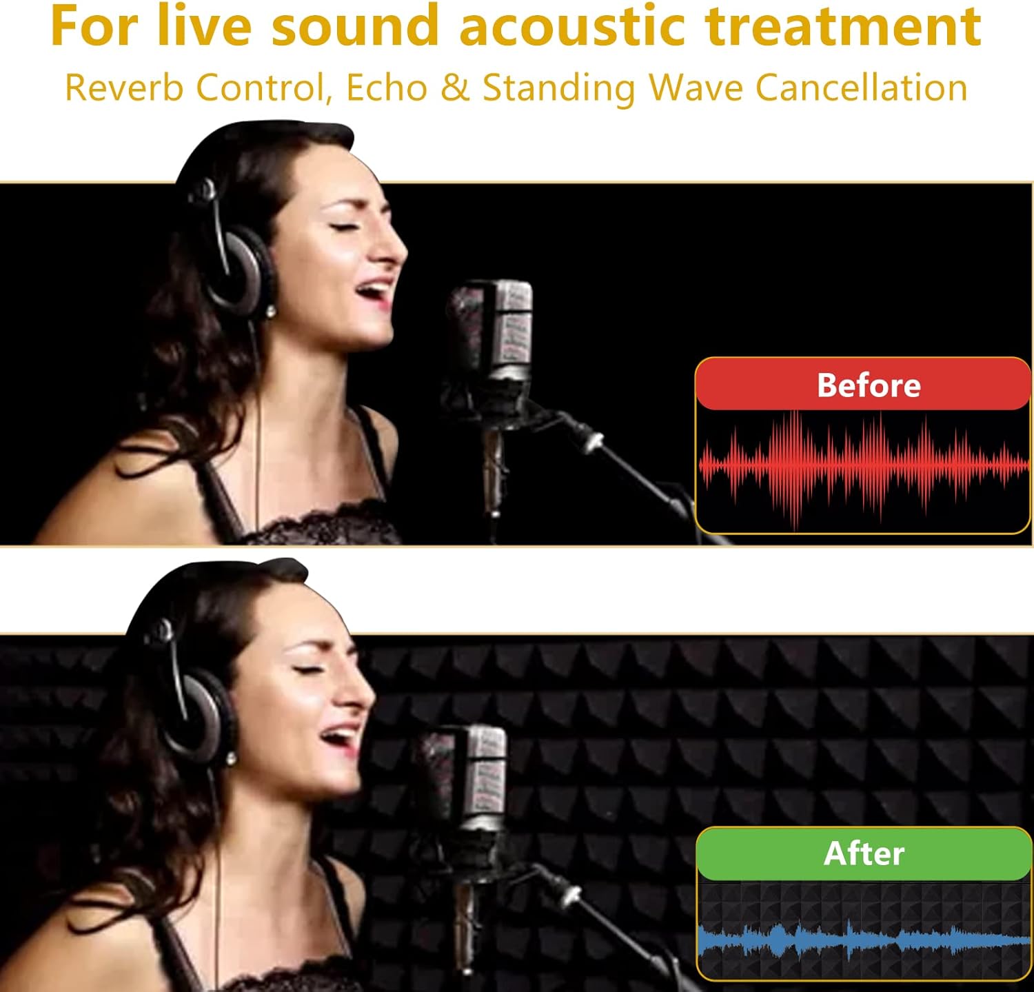 The pyramid design of the panels is not only aesthetically pleasing but also enhances their acoustic performance by diffusing sound waves and minimizing echo. Easily install these panels on walls or ceilings to create a professional sound environment that enhances audio clarity and minimizes distractions.